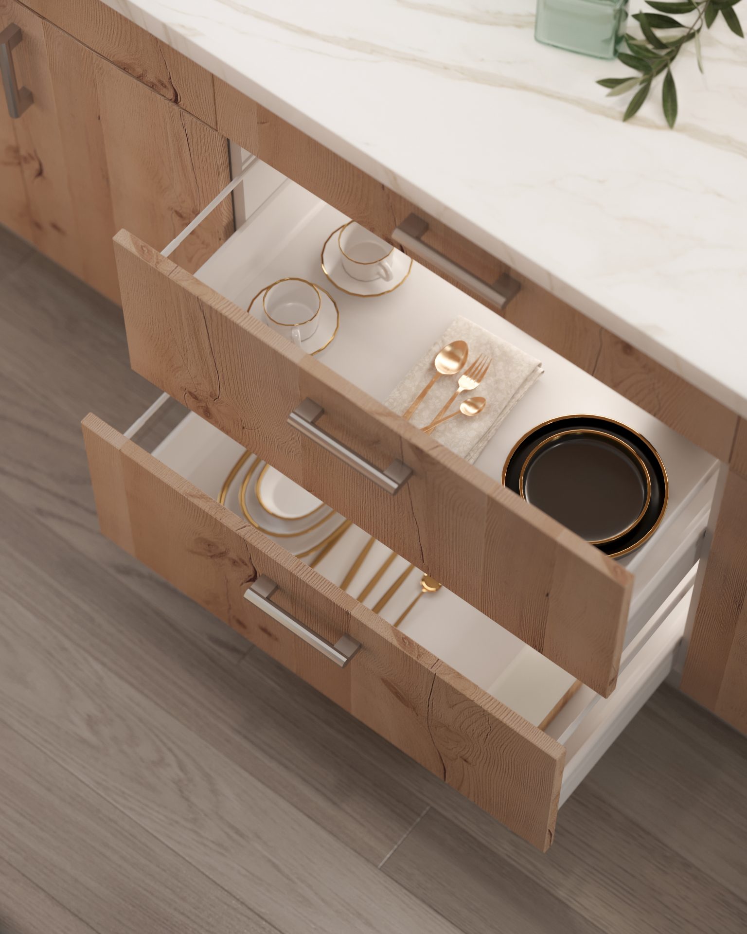 Choose the Driftwood and Barnwood simplistic styles to create a warm, welcoming, and rustic feel. Natural calming tones are present throughout each door and create a cozy feel. These beautifully styled clean, yet modern style cabinets are sure to add that inviting touch to your new kitchen.