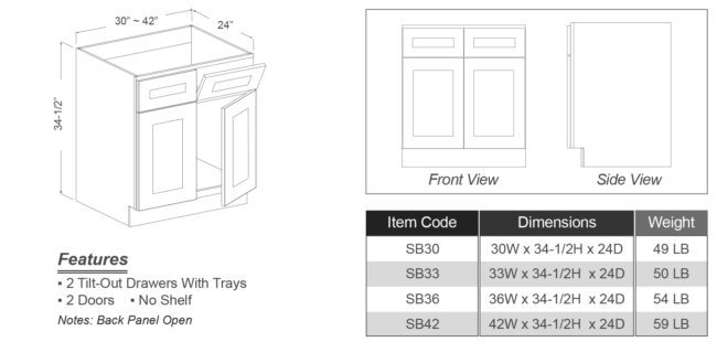 / 42”W sink base w/ tip-outs