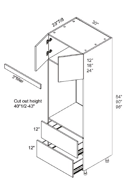 MICROWAVE & OVEN W/2-DRAWER CABINET 30″W X 84″H X 24″D